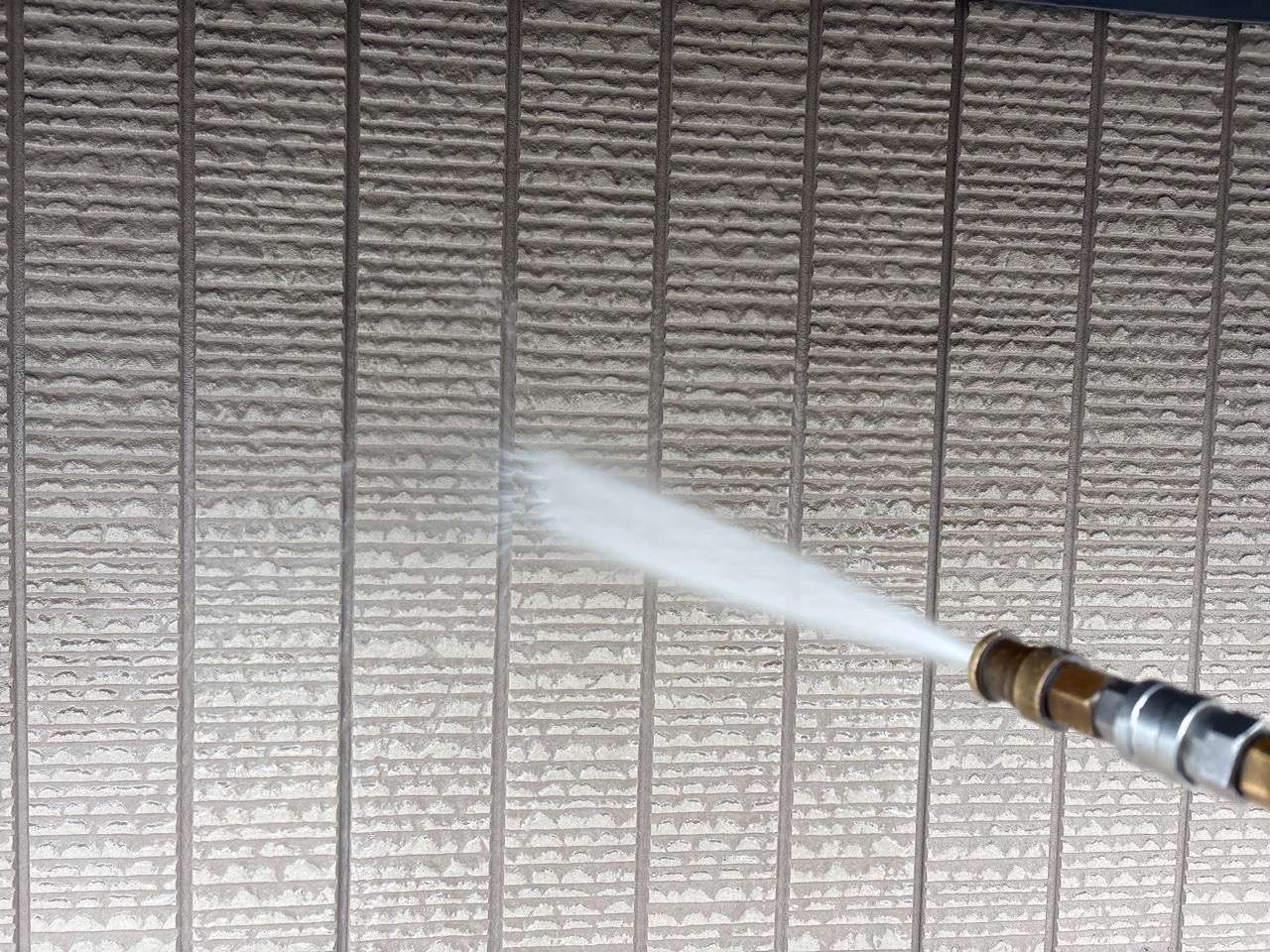 もう一つ、高圧洗浄は綺麗に汚れを落としてくれます。綺麗になる事は大変結構なのですが実は高圧洗浄機で洗浄をするとその強い圧力で 外壁(塗膜)が傷みます。まだまだ塗膜が健全だからと言って 頻繁に 高圧洗浄をする事は塗膜の劣化を早めますので注意しましょう。