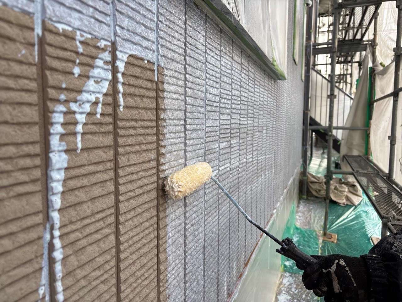 また、下塗りは仕上がりを良くするためにも行います。下塗材により下地が調整される事で塗装面が整えば、上塗り塗料の吸込みが解消され塗料の塗りムラも抑えられます。均一な仕上がりは美観だけではなく、場所毎で塗膜厚に差が出にくくなる等の劣化対策としても重要な意味があります。
